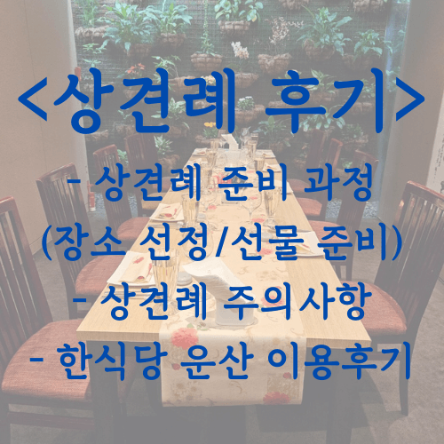 스튜디오 촬영을 예약하고 준비하면서, 결혼 준비하면서 꽤나 중요하다고 생각되는 과정인 상견례 또한 예약을 해두어야겠다는 생각이 들었습니다. 처음에는 단순히 부모님끼리 만나는데 무슨 문제가 있을까 싶었지만, 상견례에 대한 여러 가지 후기를 찾아보면서 때때로 상견례로 인한 갈등의 시작(?)이 되는 경우가 있다는 것을 봐서 점점 걱정이 되기 시작했습니다.