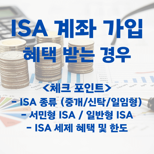하지만 ISA 계좌는 일반형 ISA와 서민형 ISA 두 가지로 나뉩니다. 아래 내용을 축약해서 핵심만 얘기하자면, 서민형 ISA는 일반형 ISA보다 더 좋은 세제혜택을 받을 수 있지만 가입 조건에 소득 등의 자격 조건이 제한됩니다.